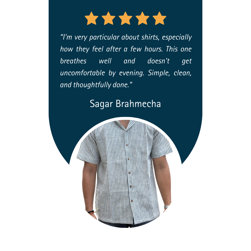 Made from handwoven Khadi cotton, the fabric allows air to circulate naturally, keeping it comfortable in warm weather and through long hours. Free from synthetic blends, it feels light on the skin and wears well over time.